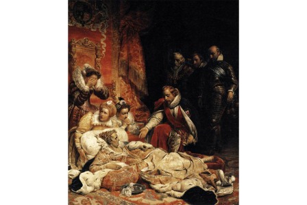 Paul Delaroche, “Cái chết của nữ hoàng Anh Elizabeth I”, 1828, sơn dầu trên canvas, 422 x 343 cm, Louvre.